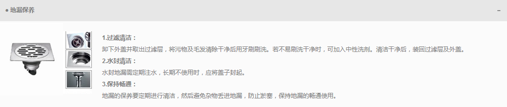 地漏的保養(yǎng)要定期進(jìn)行清潔,然后避免雜物丟進(jìn)地漏,防止淤塞,保持地漏的暢通使用。