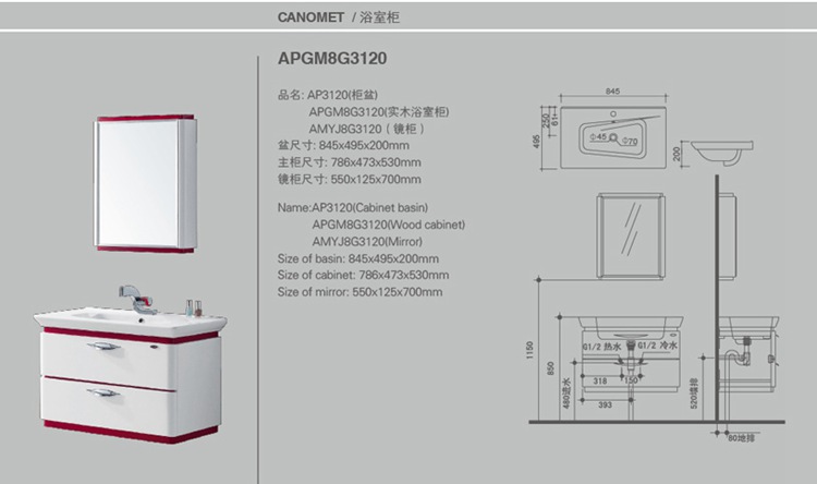 品名:實木浴室柜APGM8G312 型號:APGM8G3120 系列:實木浴室柜系列